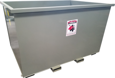 The Monkey Box is designed for the collection and storage of scrap and bulk material. It also has the added ability to be stacked when full and dumped using a forklift equipped with fork rotating attachment. The heavy duty 6500 lbs. capacity box is available in 2, 2.5, 3.5 4, 4.5 and 5 cubic yard models. Along with these standard boxes we can custom design and build a box to meet your specific application. Our standard model has 2-way entry channel with 4-way entry option available and the following upgrades casters, lids, lifting eyes and option paint colors. Standard heavy duty model includes following construction features: